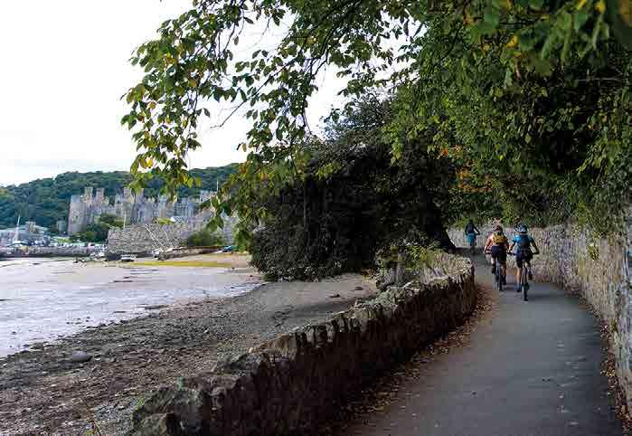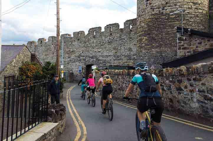 There is a richly deserved reward of a rocky descent past Neolithic hut circles on a timeless rocky drove road, with ancient stone walls and a broad tree canopy. The surface is loose and the track can be busy with walkers and other users, so keep the pace of your entry into the royal town of Conwy stately rather than rebellious. Then it’s time to let what you’ve achieved and experienced start to sink in as you cruise through the back streets of Conwy, until a final bend reveals the majesty of the massive castle and its bridges. Roll under the medieval town walls, past the smallest house in Britain and onto the old quayside, where you can let your pedals rest and start to reflect on the personal Eryri stories you’ve created.