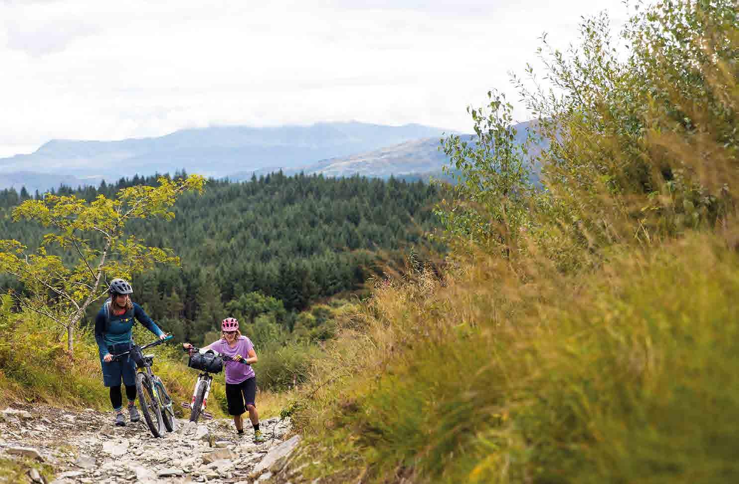 There are several bike shops en route, but make sure your bike is in good order before you set off for Machynlleth. Try out anything new – including bags and clothing – in advance so you know everything works. Take tools and spares to deal with any likely on-trail issues, and pack a first aid kit too, as you will be remote from assistance at some points and phone coverage is very variable. If the weather is likely to be wet, a bottle of chain lubricant and spare brake pads are a wise precaution too. Obviously how minimally or luxuriously you want to pack depends on you, your schedule and where you’ll be sleeping. There are several shops along the route for restocking, and specialist outdoor shops in Machynlleth, Dolgellau, Betws-y-Coed and Capel Curig. The off-road nature of the riding favours strap-on bikepacking bags and/or a backpack rather than racks and panniers that can rattle loose. Finally, while most of the route is very remote, some sections of path –particularly the shared-use trail alongside the Mawddach estuary – can be busy, so a bell can go a long way to ensuring polite progress. They seem to work well with sheep too, which will be a more frequent issue.
