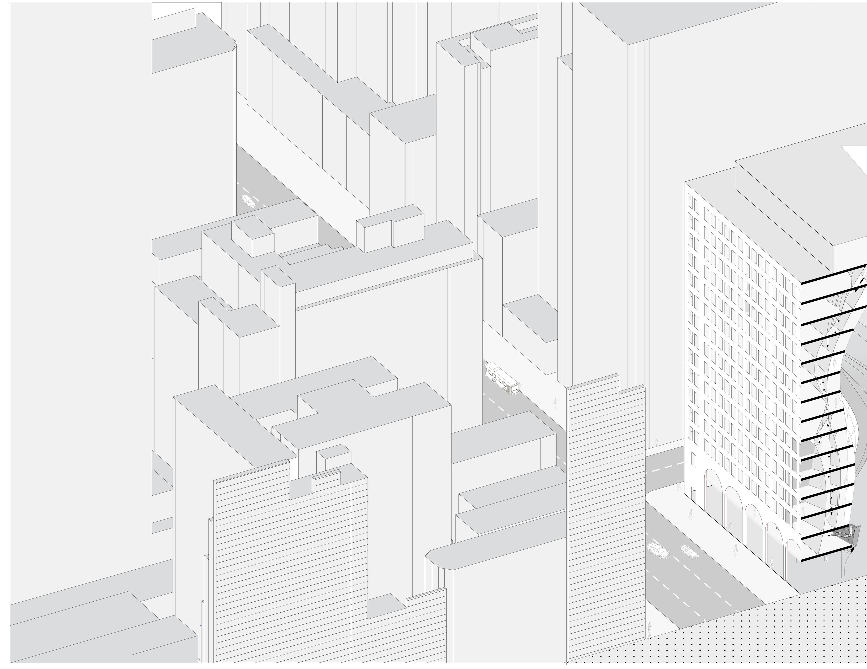 Unit 23 is a yearlong graduate studio focusing on architectural form. A site was selected and documented through drawings. The site is the Textile Building (295 Fifth Ave.), and the drawings of this site dictate the direction of the architectural proposal.