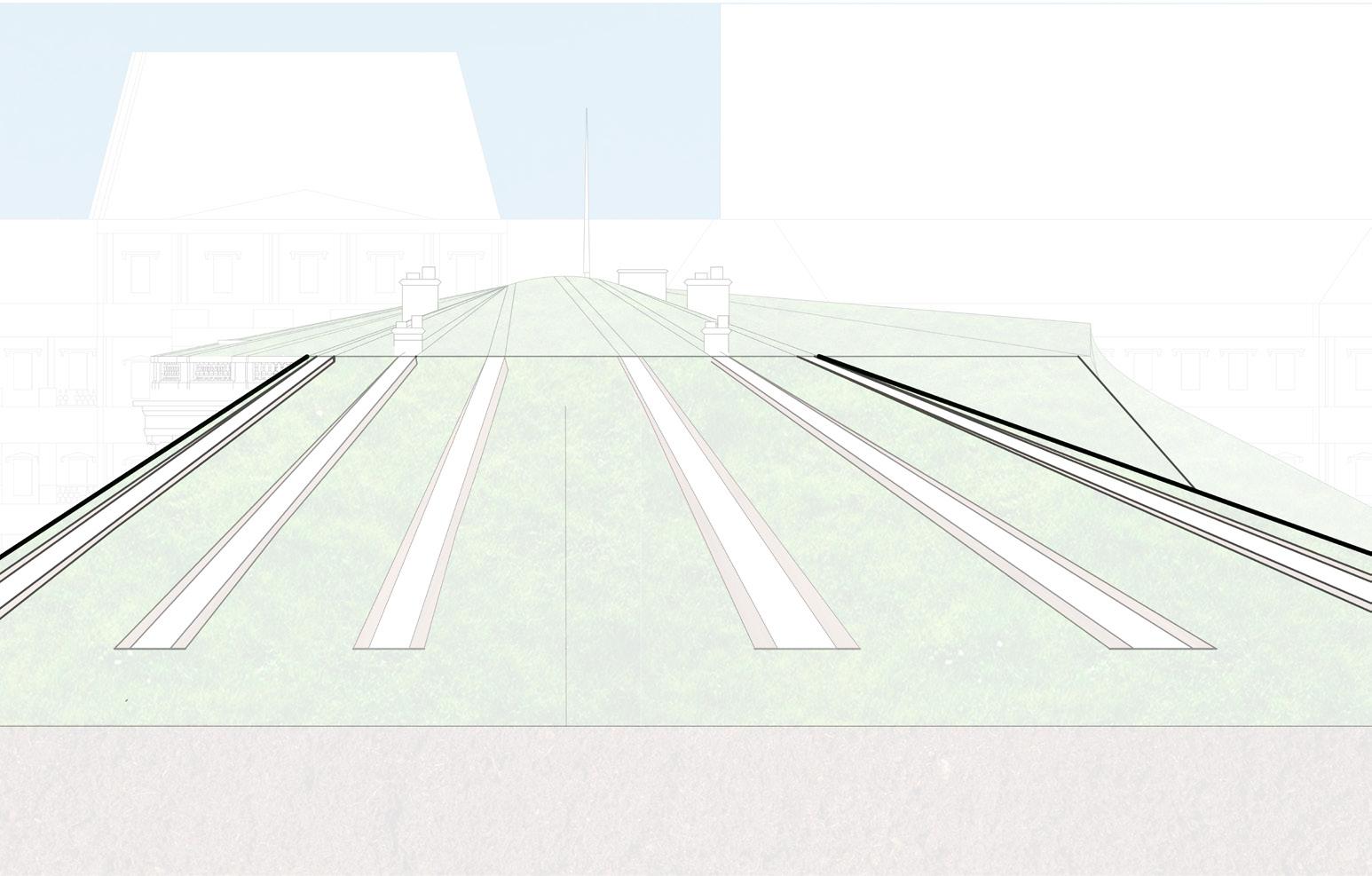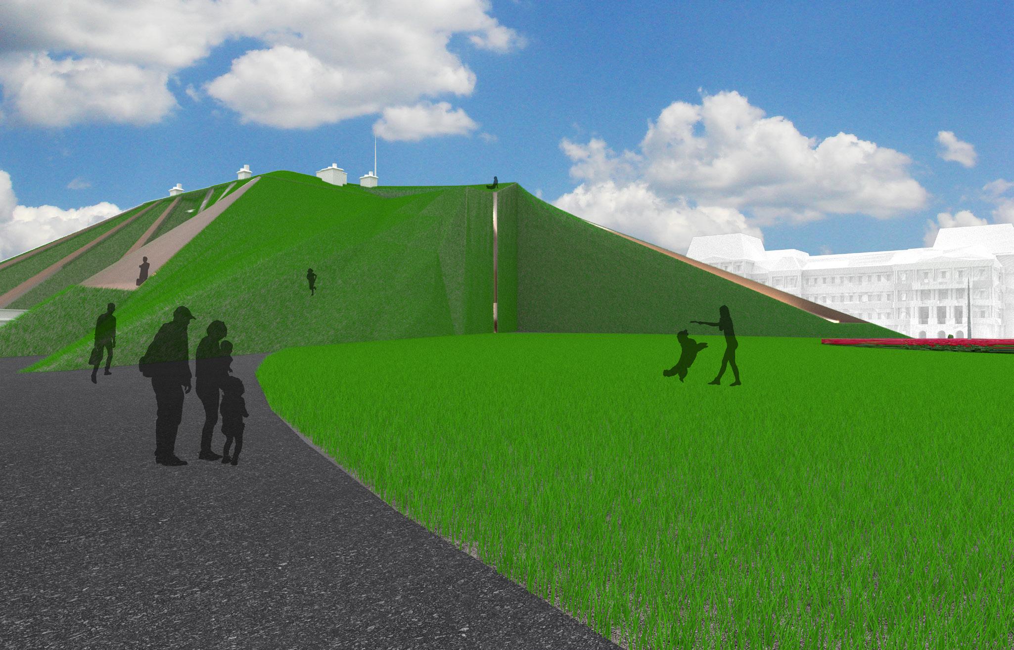 Each architectural decision is made with surveillance in mind. For example, the form of the intervention is dictated by the blind spots of the White House windows. In those blind spots, the ground rises to envelop the building with the intention to create a public space. This move brings the public closer to the government, allowing them to see how they function. The public is also granted an artificial hill, giving them unprecedented views of Washington, D.C.