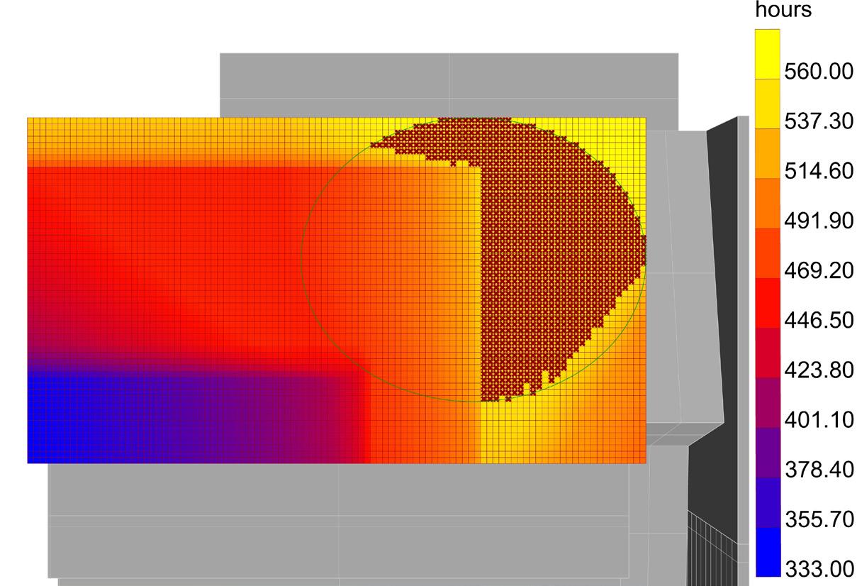 The Goal: Optimize the shape and location of this circular cutout such that, when fitted with a window, it will let in the maximum amount of sunlight into the fourth floor gallery.