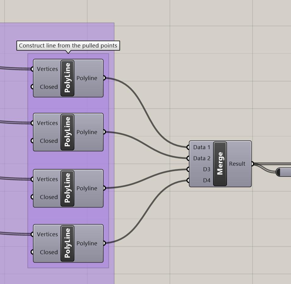 Step 4: Create a polyline connecting every point in its layer, effectively “shrinkwrapping” the circles from Step 2.