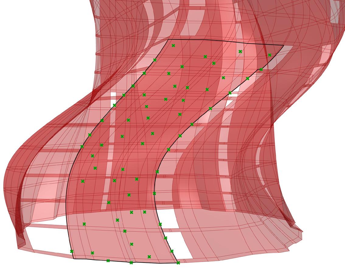 The boundary of the cutout is divided into 75 equidistant segments and fed into Nuclei’s Point Attractor for Voxels as starting points.