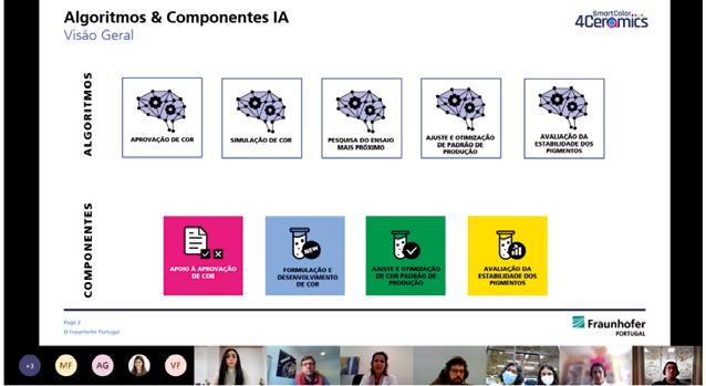 técnica dinamizada pela FhP, com o objetivo de fomentar a discussão em torno do trabalho desenvolvido até ao momento e aumentar a co laboração entre as várias entidades do consórcio. Também foi possível tomar algumas decisões em conjunto, como por exemplo acordar a lista de algoritmos/funcionalidades que serão prioritários desenvolver.