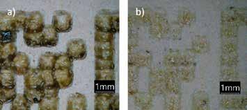 No segundo caso, trata-se de uma má distribuição do material cerâ mico, os sistemas são atuais. As medições apontam para um trapézio de 1.2 mm, corrigido com a alteração dos valores operacionais do carregamento. Como descrito, o carregamento é sensível e depende em grande parte da experiência dos operadores e responsáveis des tas secções produtivas.