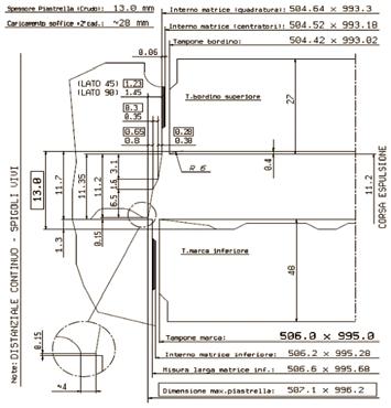 No primeiro caso, embora as dimensões cumpram a norma referida, foram propositadamente utilizados cunhos das primeiras gerações, 1995, de fabrico Italiano. Apesar da idade, ainda funcionam, demons trando a revolução tecnológica dos sistemas de apoio à prensagem. Graças a esta, os operadores destas secções produtivas têm presta ções de trabalho e eficiência muito mais elevados.