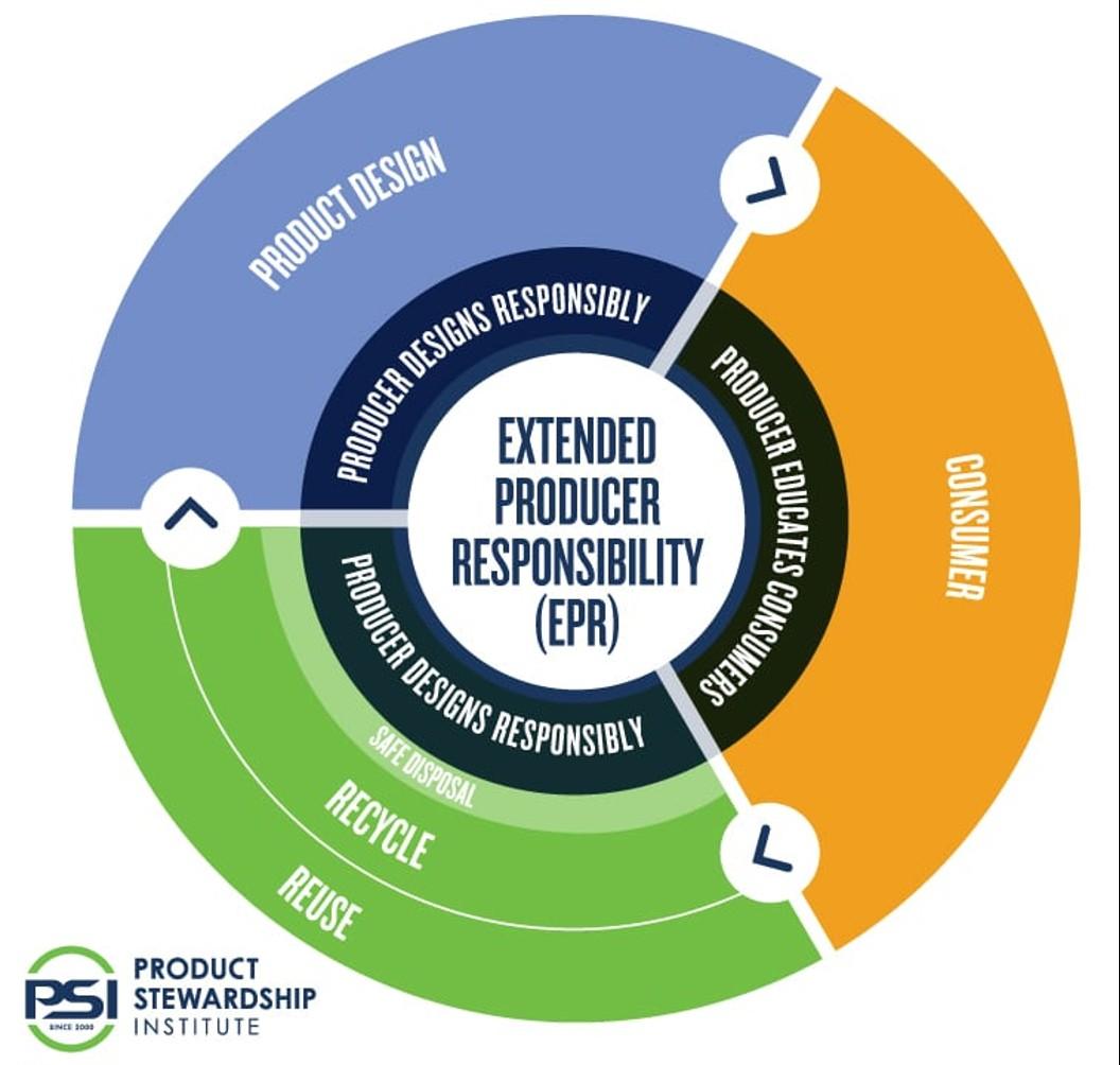 Extended Producer Responsibility (EPR) is a type of policy that assigns producers the responsibility of managing the end-of-life of their products. This can include both financial and operational responsibility.