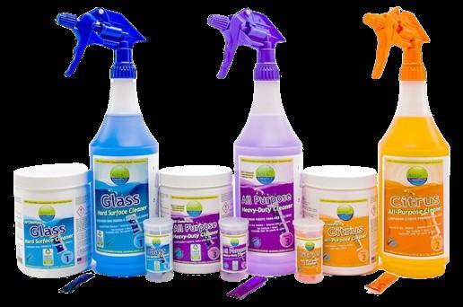 Reusable bottles and sprayers Big savings on shipping weight No contact with any chemicals Reduce storage space High-quality cleaners for all uses