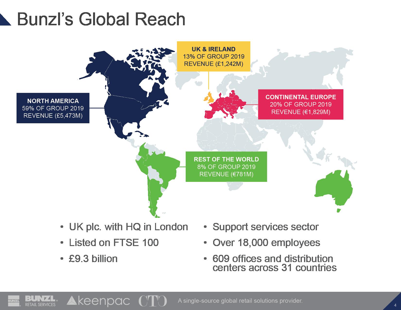 Bunzl, Plc is a focused specialist international distribution and services group providing customized solutions to B2B customers in 33 countries and six market sectors