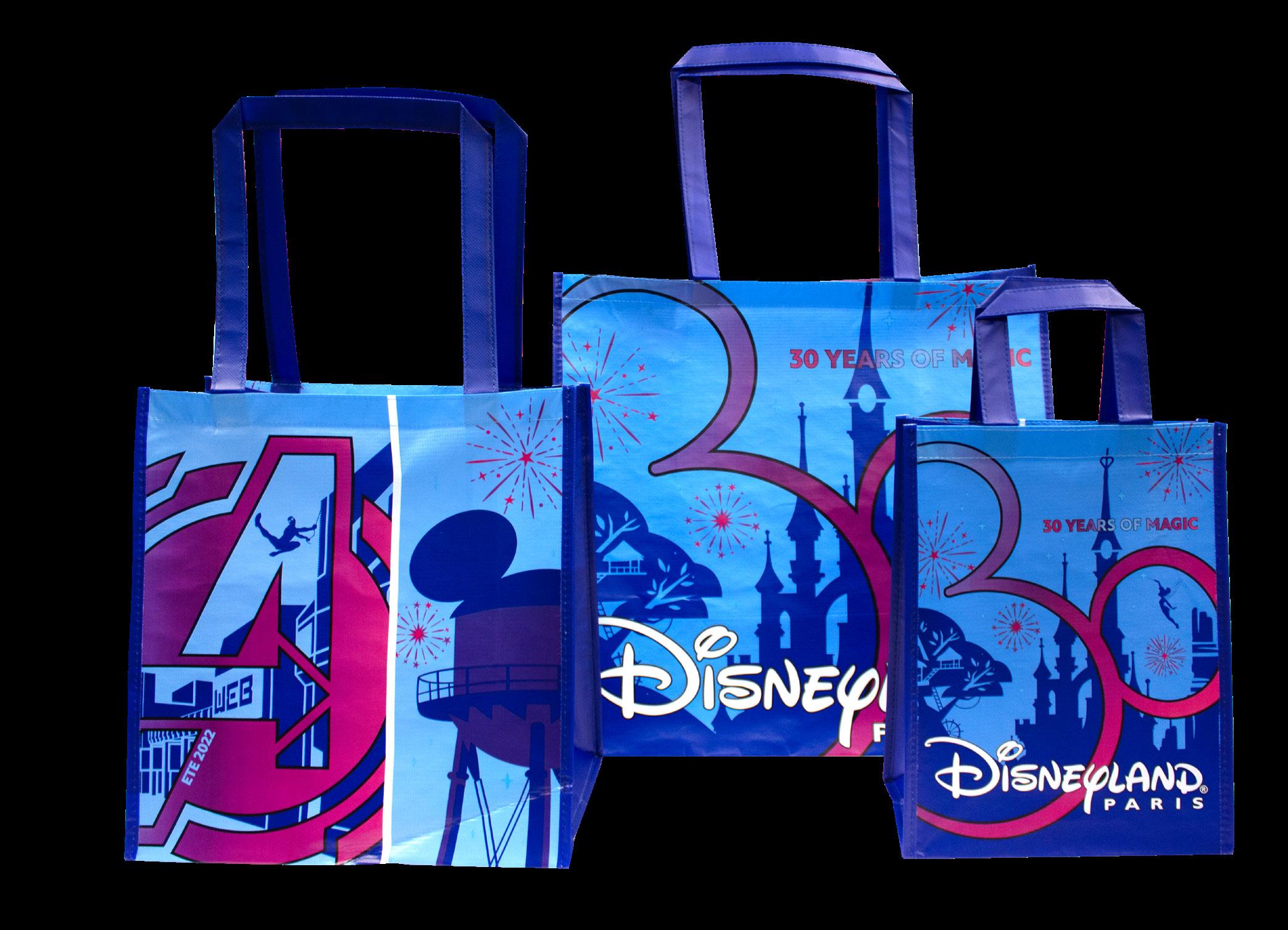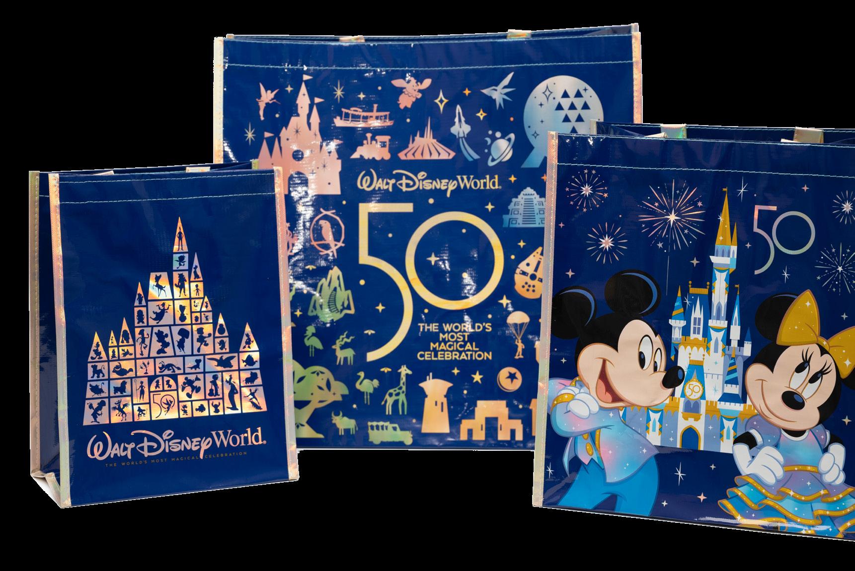 Over the years we have produced reusable bags, paper bags, gift bags, tissue paper, stickers, and more. We have assisted both Disney stores and Parks transition from poly bags to reusables, and even helped Walt Disney World ring in their 50th Anniversary with an epic bag to match the celebration (still available through March of 2023), along with 8 other reusable bags that donned the Disney name in 2022.