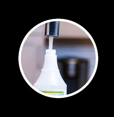 Shipping only the cleaning concentrate saves an enormous amount of waste that would have been used on larger shipping boxes and packaging. The product itself is also safe and sustainable and completely dissolves in water with no leftover waste.