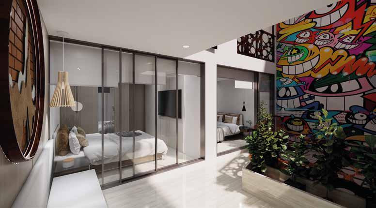 En el exterior, el sistema de persianas abatibles permite transformar la fachada de acuerdo a los requerimientos del usuario.