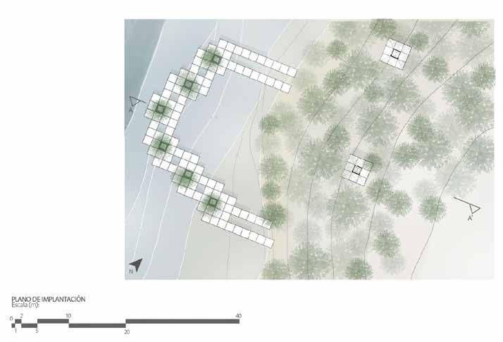 Y finalmente, las unidades tipo B, apoyarán la recuperación del ecosistema de manglar en el borde costero, por lo que se dispondrán sobre el agua dando soporte a nuevos individuos arboreos, aumentando la cobertura natural.