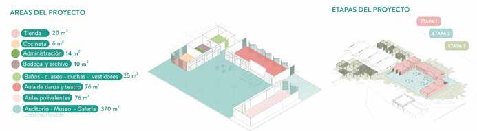 El proyecto se desarrolla con enfoque de inclusión de la diversidad y enfoque ambiental alrededor de un espacio que diluye los limites de un hall de acceso, un auditorio, un museo y una galería permitiendo un espacio público al interior, siendo este un espacio flexible, sensorial e incluyente para diferentes usos culturales y acciones espontáneas, este espacio es contenido por 3 volúmenes que disponen las aulas y servicios complementarios. Todo esto bajo un gran contendor que reutiliza la estructura y cubierta existente como idea de evolución y cambio a través de los elementos construidos para lograr el mayor alcance posible.