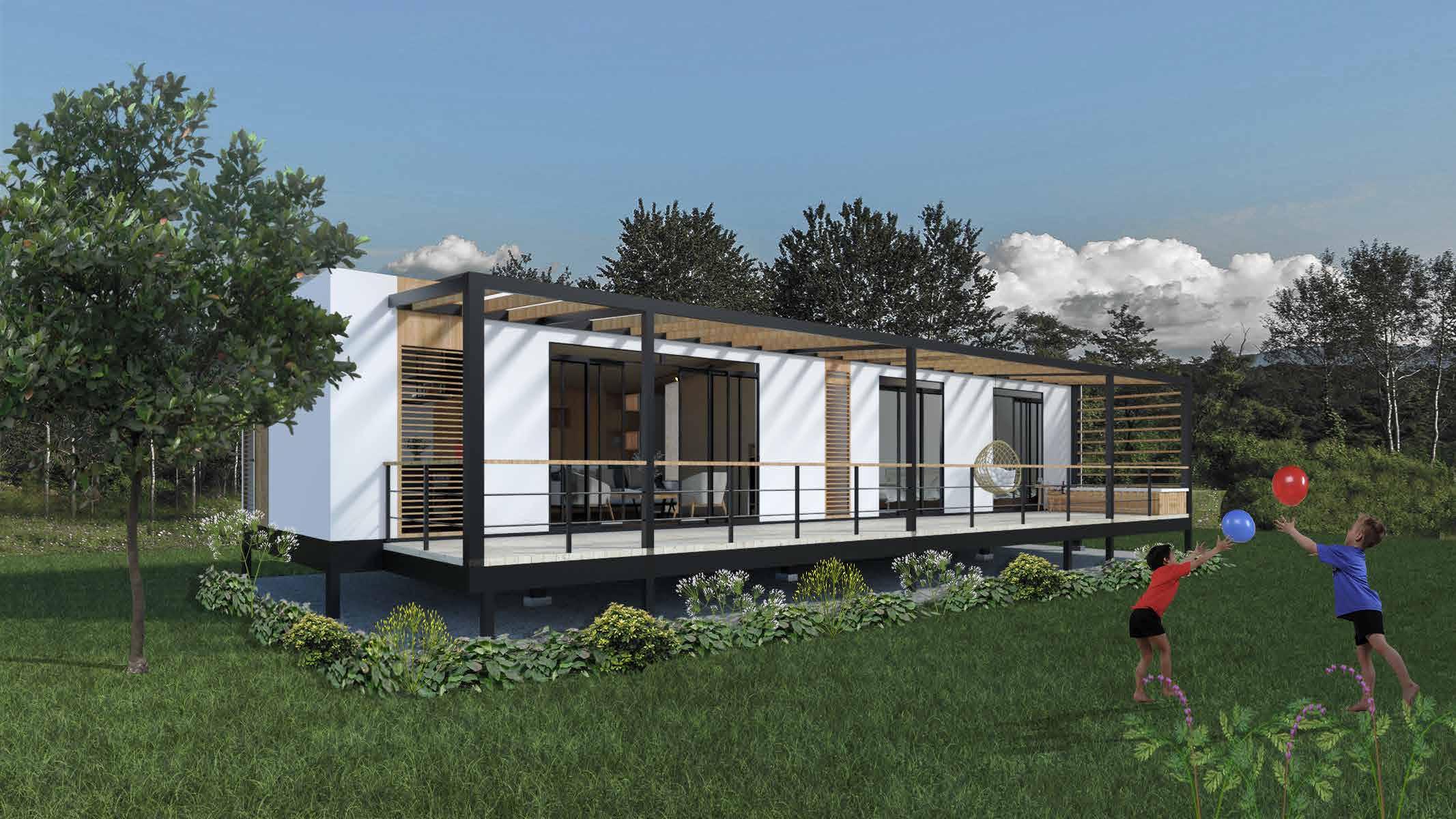 En este diseño de vivienda prefabricada de 120 m² se utilizan medidas estándar y materiales seleccionados para la fabricación con el objetivo de garantizar un ensamblaje preciso en el que se optimicen tiempos y se minimicen desperdicios.