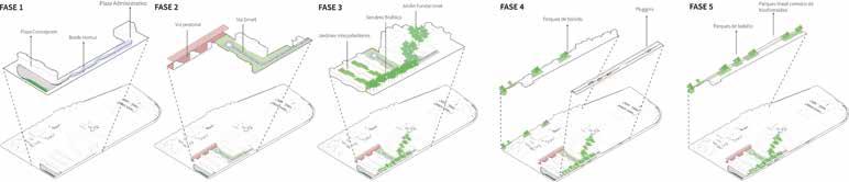 Para el planteamiento proyecto se considera su viabilidad e integración de acuerdo a la evolución de la ciudad y el sector a futuro, por esto se propone su ejecución en fases, en donde la quinta propone la apertura de espacio publico en el borde sur del complejo.