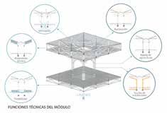 Sistema estructural de módulos prefabricados que optimiza el funcionamiento y construcción de la vivienda.