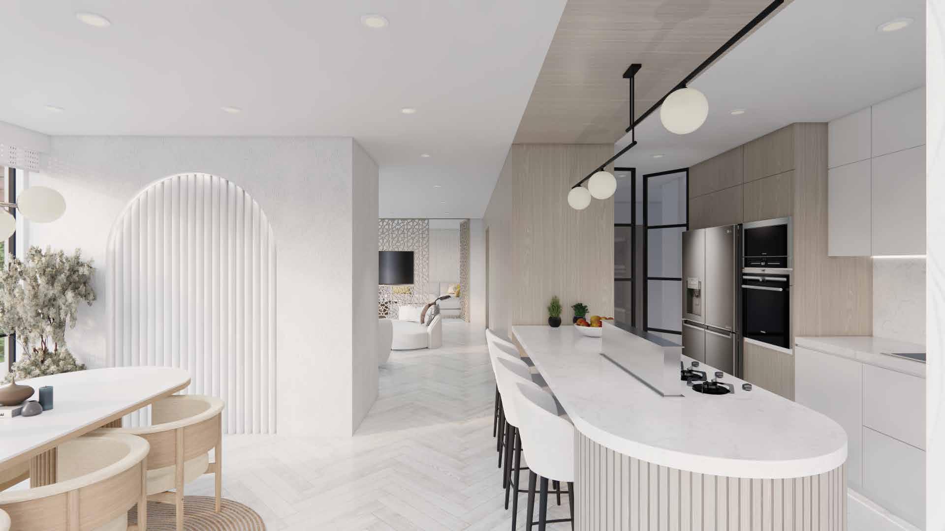 Dos de las posibles configuraciones interiores incluyen: Una planta completamente abierta en la se que libera el espacio interior y otra, en la que los espacios se cierran, permitiendo mayor privacidad para cada miembro de la familia.