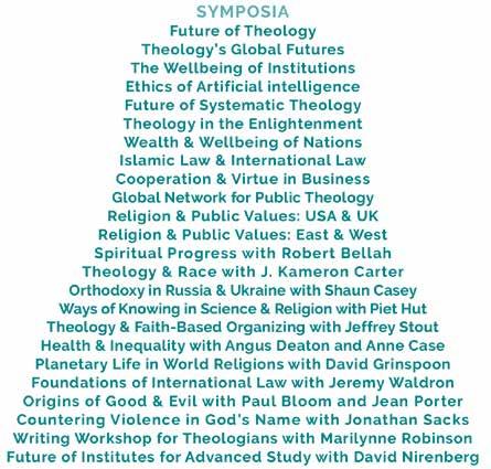 formed friendships in these years with the Princeton University sociologist of law Kim Lane Scheppele, discussing questions of law and religion, and economist and Nobel Laureate Angus Deaton, who presented his research on poverty and health at an early CTI symposium on the wealth and wellbeing of nations. These were crucial connections in building relationships with Princeton University that would later have a formal institutional and public character to them.