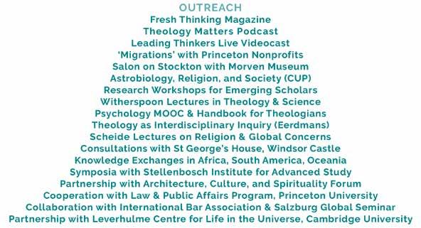 “Having a program in cooperation with Princeton University, getting funding from a scientific agency like NASA, those are the kinds of breakthroughs that have come out of focusing on doing one thing and doing it well—playing to our niche strength of convening small-scale high-level research groups with global reach. For five years from 2012 to 2017, we had, in effect, over a million a year for research fellowships, which allowed me to convene not only theologians but scientists, legal scholars, scholars of other religious traditions.”