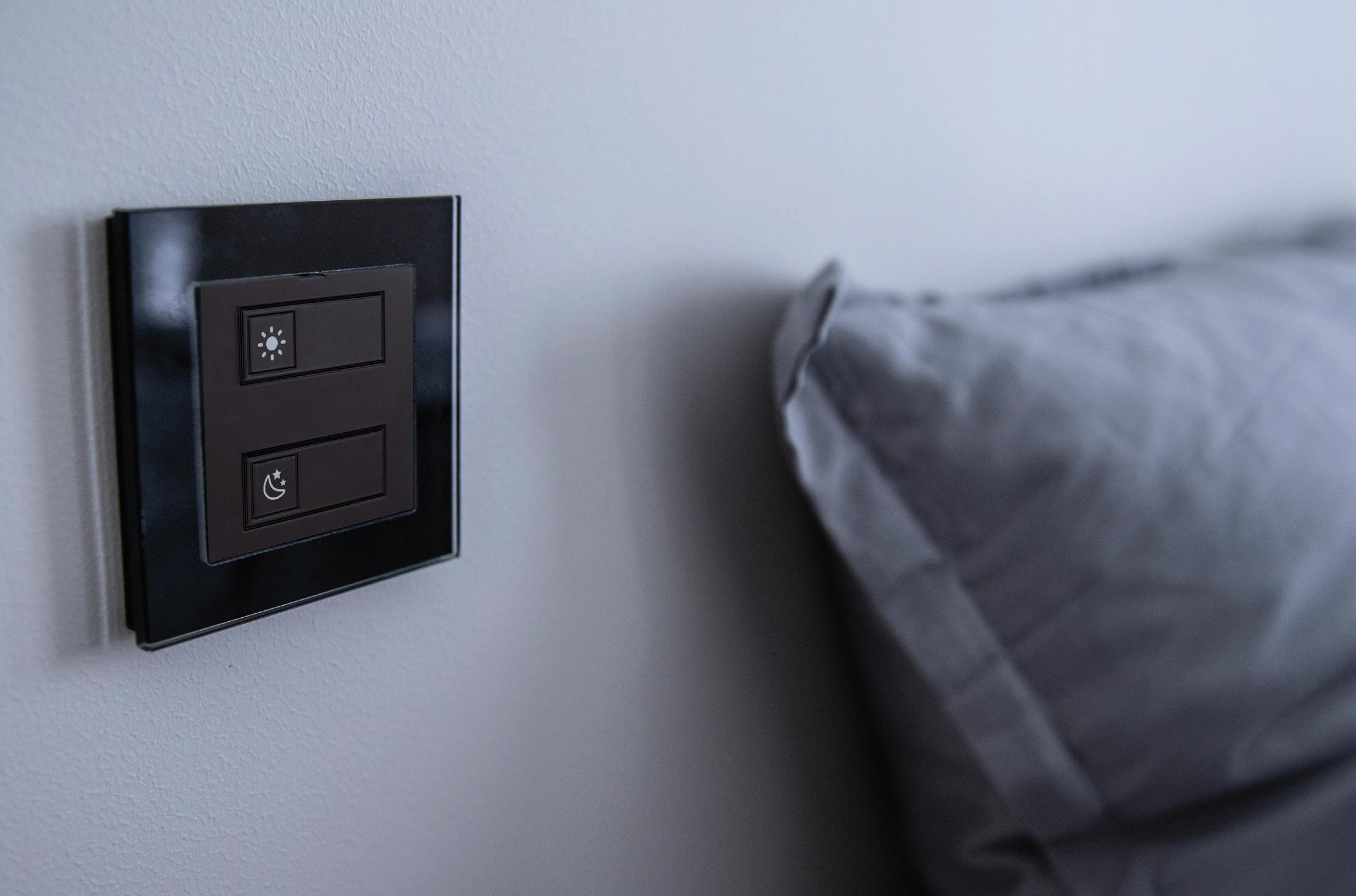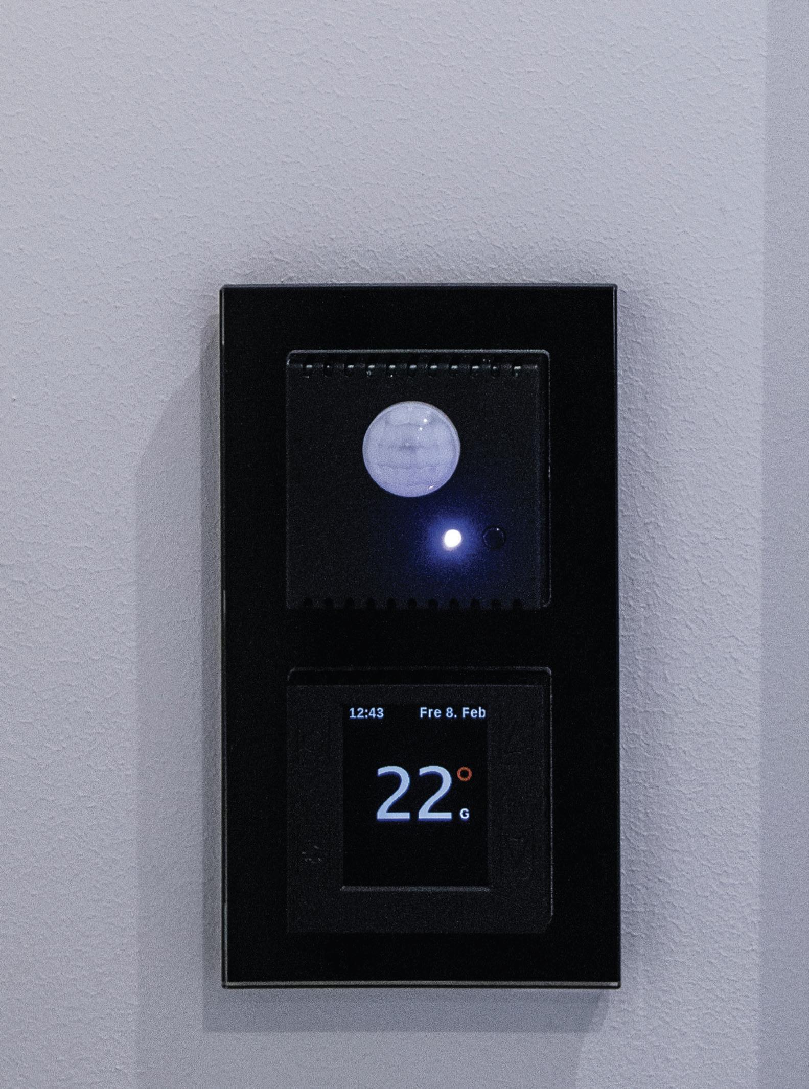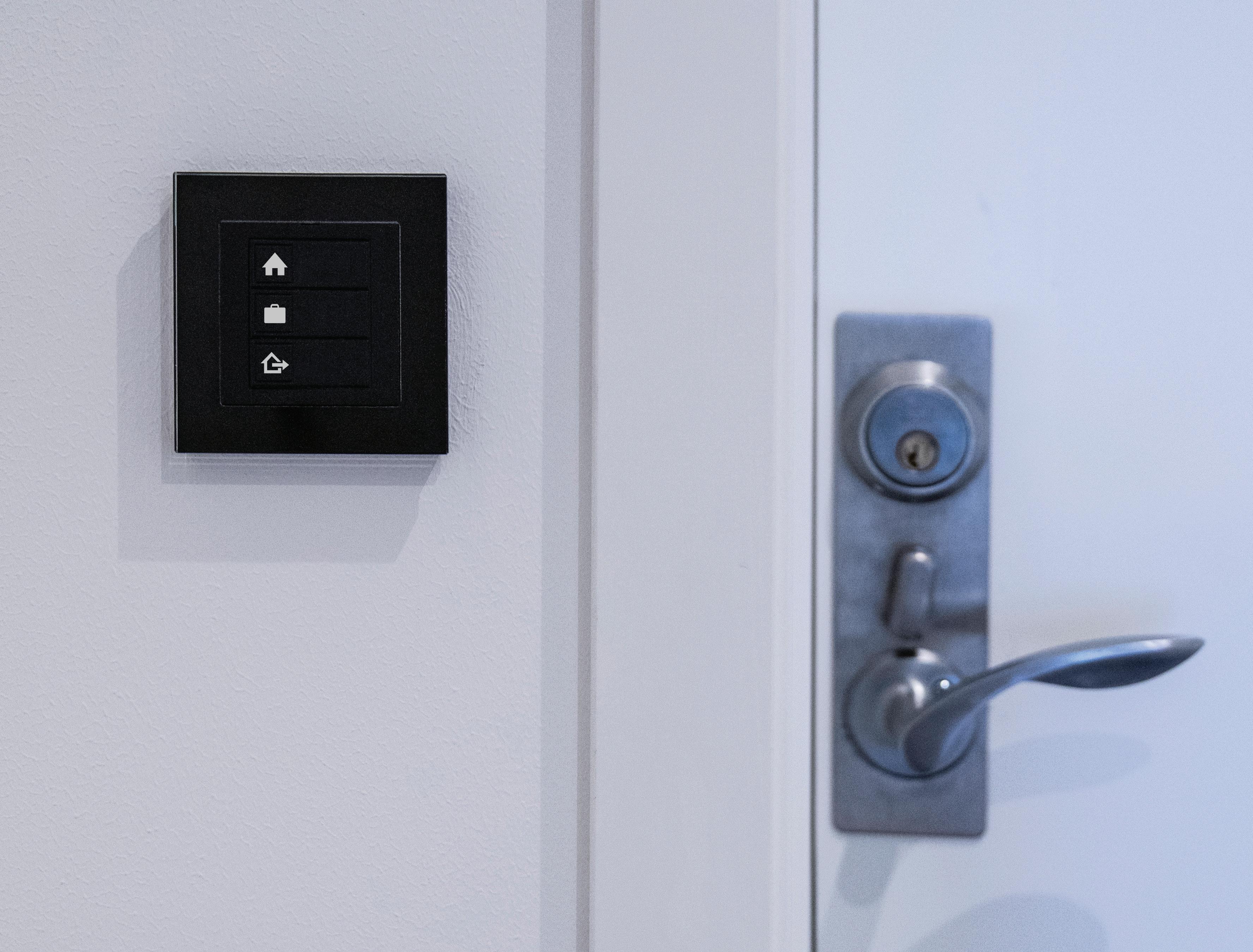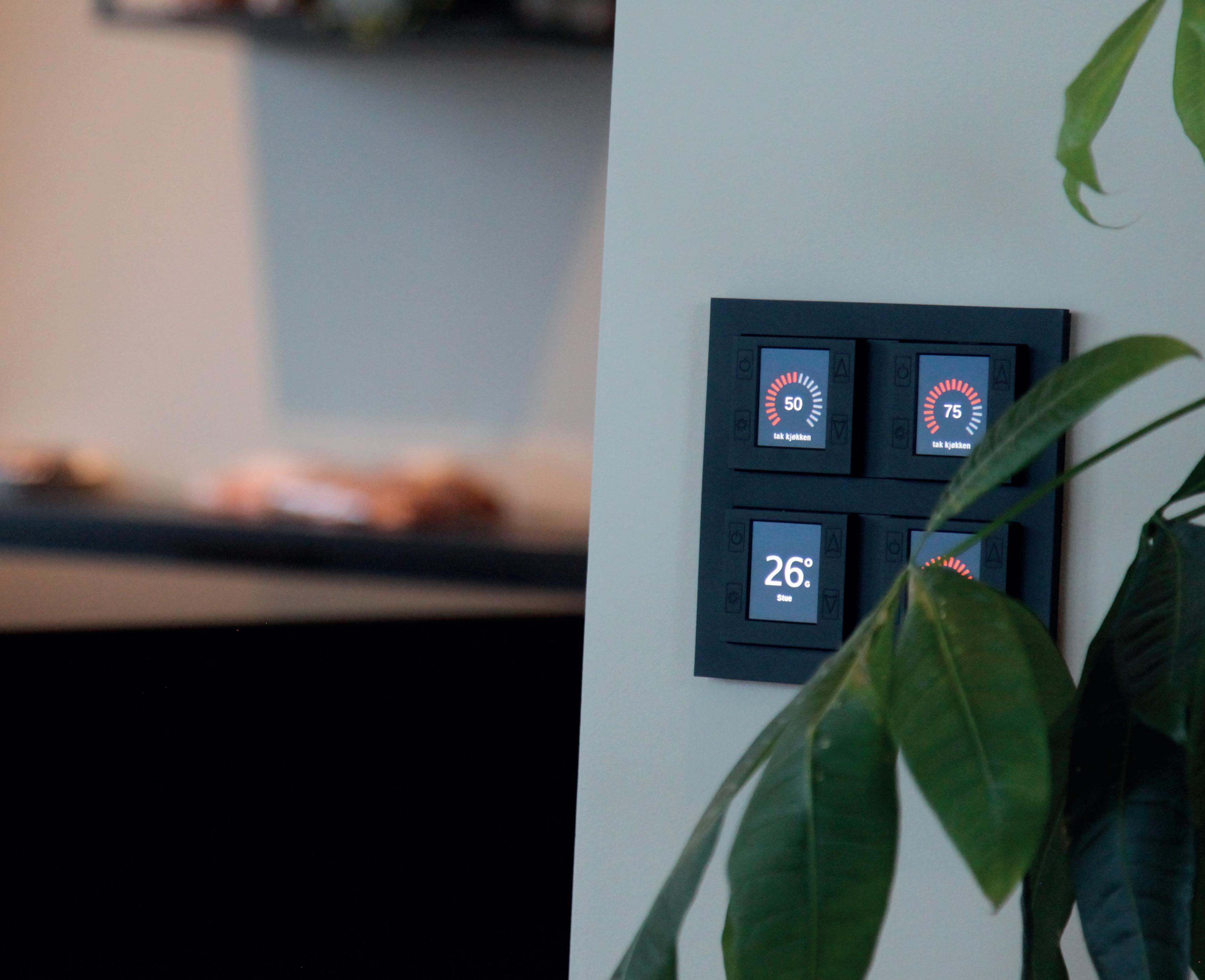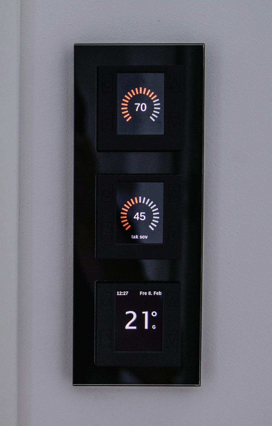 Trådløse styrepanel for lys, varme og sikkerhet.
