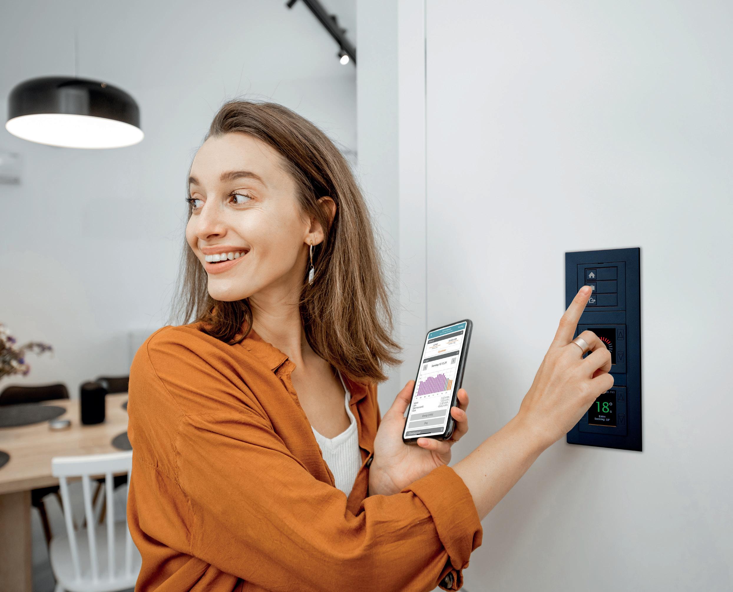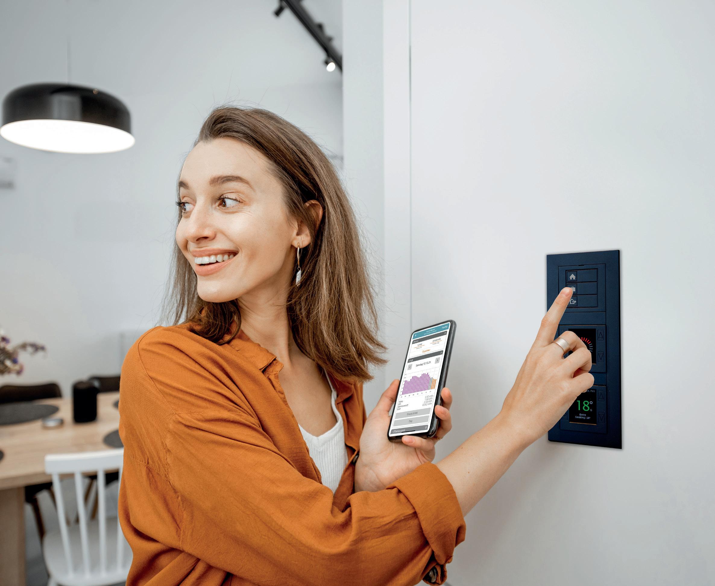 Med mTouch® EnergiKontroll, kan du enkelt fjernstyre lys og varme, og slå av vannet og elektriske apparater - rett fra mobilen.
