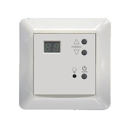 mTouch® Dim viser innstilt lysnivå i LCD-display og justeres med touchknapper opp/ned.