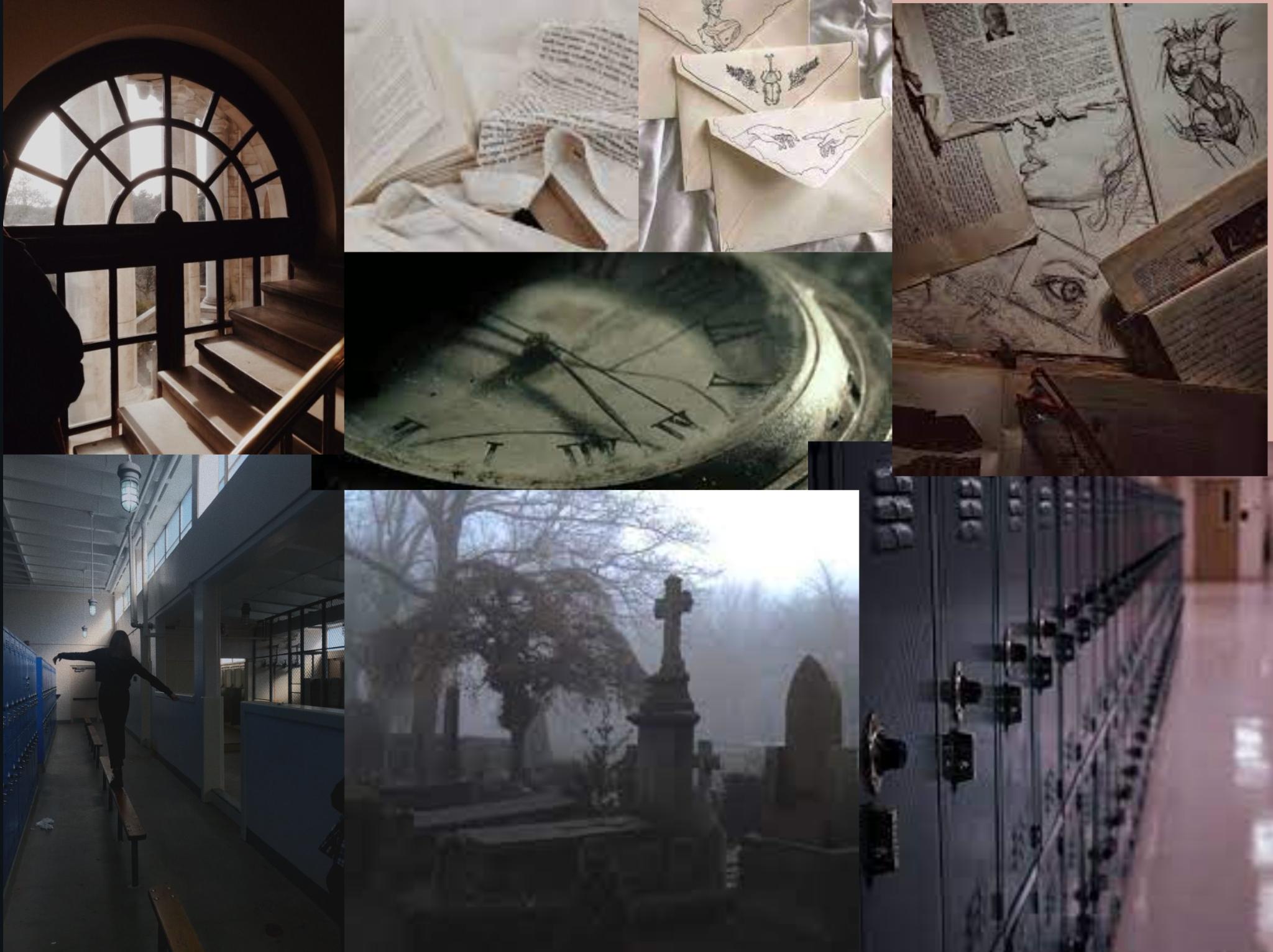 ForbothofmyartworksImadecollages Iwastryingtogivebothtumblr/pinterestaesthetics For Ruyi’svignette-inspiredart,ittookplaceinaschoolsoIusedmanyacademia-vibedpictures.Themain characterhadtobeatagraveyardbyacertaintimesoIaddedthosemotifs Lastly,thetests/paper representsthebigexamthetwincheatedon ForMaylena’svignette-inspiredart,themultipleholding handsandloverspicturesignifyTheodore’sandSage’srelationship.Theletterrepresentstheletterfrom Theodorethemaincharactergottoinvitehertotheisland Thebloodandknivesrepresentthekiller, Theo,andthedrowningsymbolizesSage’sbetrayal Iwasgettinganobsessedlovercrushvibefromitso Iaddedpictureswithlovesickwords.
