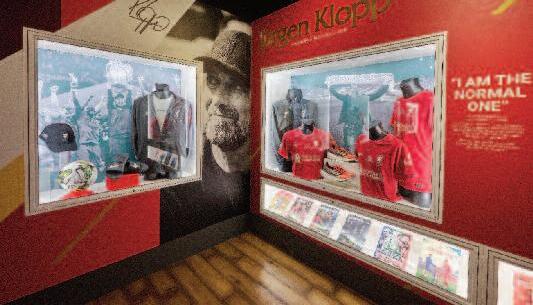 to the recently relaunched LFC Museum, which retells the club’s story in a brandnew immersive way. As you walk through the interactive displays, you will travel through time starting with ‘where it all began’ and ending with a tribute to former manager Jurgen Klopp.