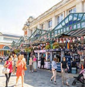 Jubile e Marke t e Jubilee Hall, which houses the Jubilee Market, was designed and built in 1904 and gained Grade 2 listed status aer a renovation programme in the 1980’s. Steeped in history, and named as a tribute to Queen Victoria, Jubilee Market is at the heart of Covent Garden and nowadays, the market has a wide variety of eclectic arts and cras stalls, to antiques and general market items spread over three different markets during a seven-day period. Perfect for tourists to browse away a few hours amongst the 120 stalls it is the only London market owned by its traders who have a 125-year lease on the market. Jubilee Market is instantly recognisable with its exciting atmosphere, flags, beautiful hanging baskets, and brass Jubilee Hall Market signage and from the moment you arrive, you are caught up in the hustle and