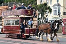 Horse Tramway, a unique attraction on the Isle of Man. Operating since 1876, these charming horsedrawn trams take you along the scenic promenade, offering stunning views of Douglas Bay. Ideal for groups, the tramway