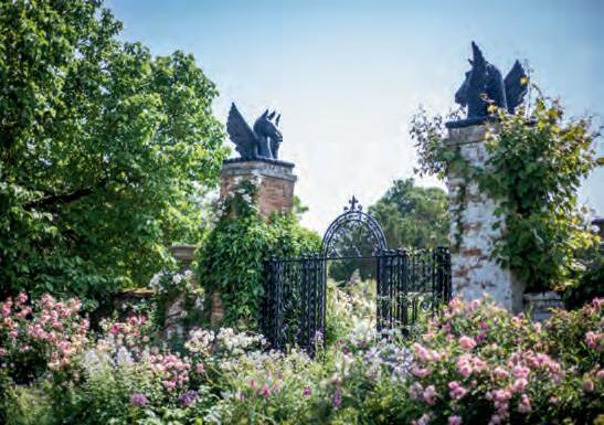 Outside, the beautifully kept gardens offer a peaceful stroll through seasonal blooms, Italian borders and ancient yew hedges. ere’s also a charming nature