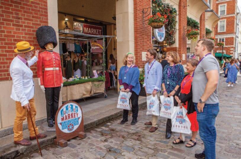 wristbands in advance. With a snack bar, restaurant, coach drop-off nearby and Covent Garden’s best attractions like the Royal Opera House and London Transport Museum a short stroll away, Jubilee Market makes a fantastic group day out full of discovery, conversation and shopping joy