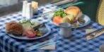 Choose from steaming coffee, freshly brewed tea, mulled wine, or spiced apple juice Then gather round the table for a delicious two-course