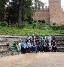 Our favourite stop, we all agreed, was at Fano where some of the group followed our local guide Sabine to see the archaeological traces of the Flaminian Way This was the ancient Roman road over the Apennine Mountains to Rome from Rimini. The rest of us swarmed into a local café out of the rain – that poured down every day except one – which served the local Moretta Coffee. This is a small drink of warmed brandy and rum, sweetened with a little sugar, topped with expresso coffee and a small piece of lemon rind You stir it and sip slowly So good that a second round was ordered when the others joined us. I was able to see the restaurant in Pesaro we might use for a group meal on the last