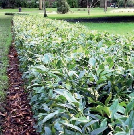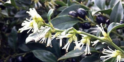 Sarcacocca ruscifolia (Christmas box hedge), a close member of standard box hedge (Buxaceae) is one of my favourites which is an evergreen bush that can be topiarised and has small white flowers with aroma of vanilla scent in December. A great stand alone plant in a border or potentially a low/border hedge in the shade.