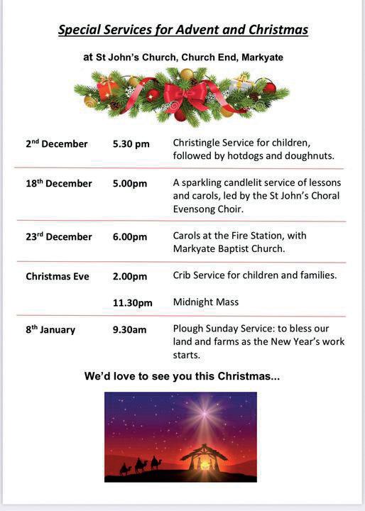 Allotment produce will be welcomed during the opening period but other donations should be taken to St Mary’s the Co-op and NISA Weymans. The Warehouse on Redbourn industrial Estate take donation but call first. Thank you to everyone who helps with this and all who give to generously.