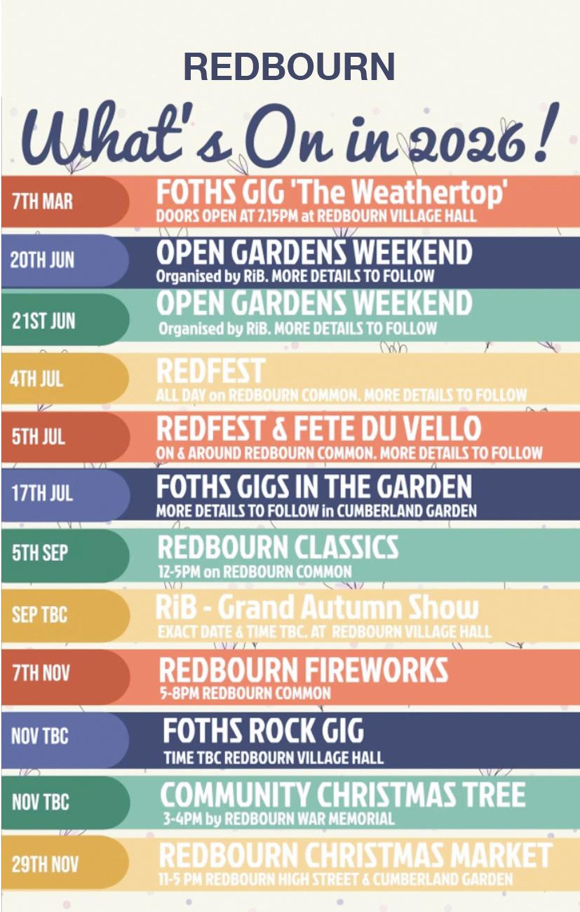Gold Award winner and Best Small Town in Britain in Bloom 2023. Besides planting schemes to enhance the village, we have all‐year‐round activities, including talks, trips, local awards, Autumn Show and Craft Fair. New members and volunteers always welcome. Join via our website, www.redbourninbloom.org.uk or contact Hilary Brown on 01582 793764, email ribmembership@gmail.com To volunteer, please contact Ann Davis, 01582 792518,email ribhelpers@yahoo.com