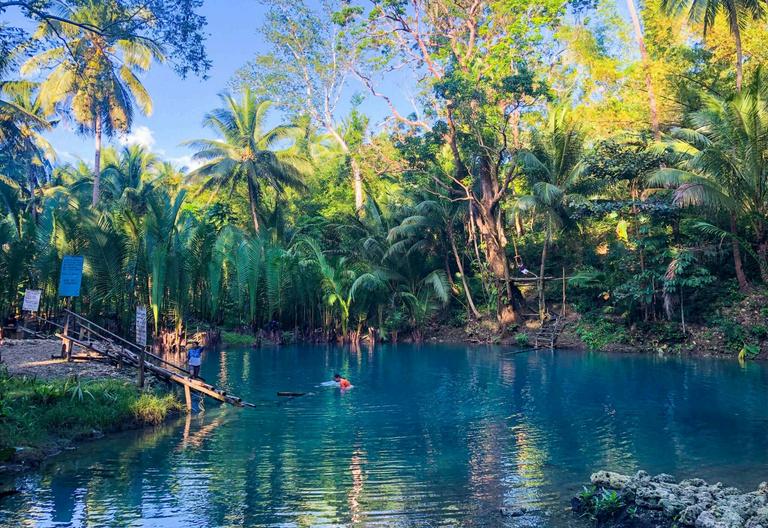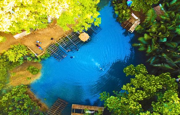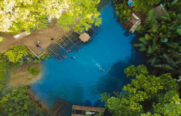 The Blue Hole in Tuburan, Cebu, is a wellknown tourist destination in the Philippines. located in the municipality of Tuburan, in the Province of Cebu, the Blue Hole is a deep dark blue of water surrounded by lush vegetation. The water is so clear and deep that is impossible to see the bottom. it is a widespread destination for swimming, snorkeling, bamboo rafting, and cliff jumping
