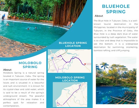 Two of the tourist destinations that can be located in Tuburan, Cebu, are the Molobolo Spring and Blue Hole. These two springs have the protentional to be more popular and help the Tuburan economy boom. The impact of springs as a tourist destination is significant and farreaching. For one, it helps to bolster local economies. Many rural areas rely heavily on tourism to generate income, and springs are a great way to draw visitors. Springs also help to protect the environment and preserve natural habitats. By creating recreational opportunities, they can help to deter development that could otherwise lead to habitat destruction.