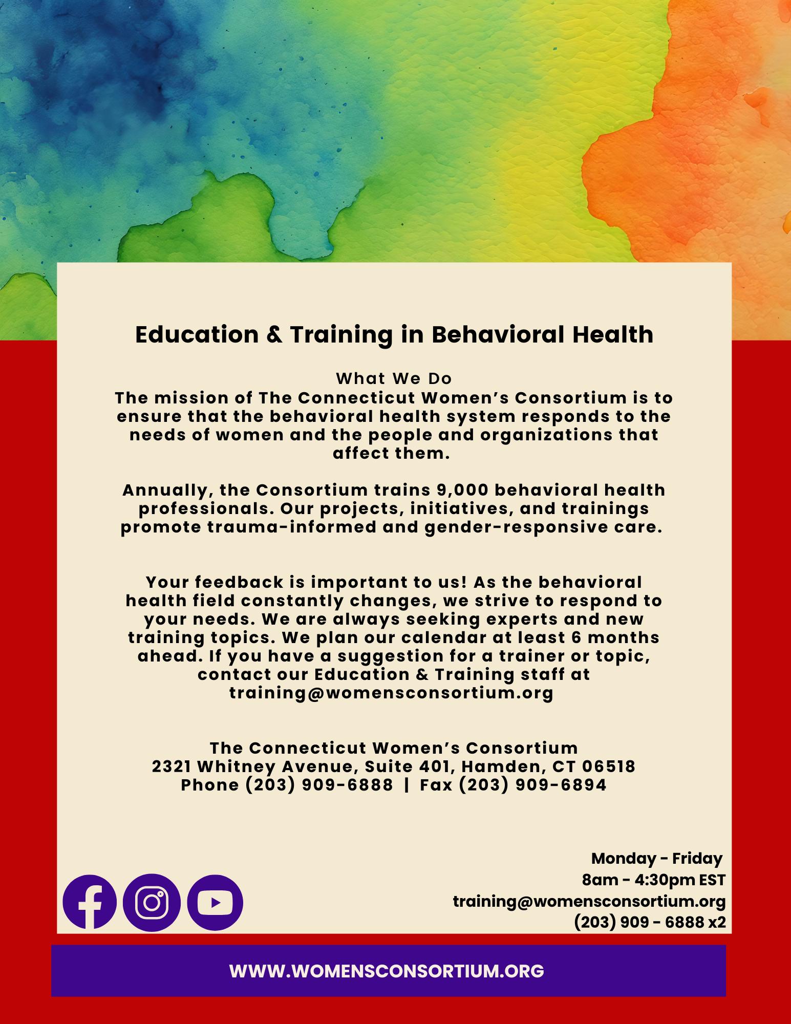 Email: training@womensconsortium.org Fax: (203) 909-6894