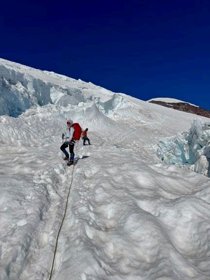 Thisclimbstartsat4,300feet;it’softensteep,sometimesicy,butthereisnoplaceelsemorebeautifulthanthoseglaciatedpeaks Arandomrockfallcouldruinyourday,and youraveragepackweighs55pounds Soundsfun,right?Bythetimesummitdayarrivesondaythree,you’rereadytofindawaytothetop Now,lifeisn’tjustaboutreaching thesummit;it’saboutembracingthejourney,butI’llsavethatsoapboxforanotherFundamental Onourfirstnight,wefaced60mphwindsandverylittlesleep;imaginetryingtosleepinsideapotatochipbagduringatornado Thenextafternoon,asweapproachedCamp Schurman(around9,500ft),wesawtheaftermathofthesamewindstorm:tentsscatteredincrevasses,otherscrumpledlikepaper,andafewbarelyhangingoninthesnow Uphigh,wecouldseeateaminchingdowntheglacierafteranexhaustingsummitpush Whentheyfinallyreachedcamplatethatnight,theysharedhowthey’dbeenonthe mountainfornearly20hours,delayedbyacollapsingsnowbridgethatforcedthemtobuildanchorsonbothsidesandcrossthebridgeonebyone,hopingitdidn’tfallunder them Oh,andnowthey’vereturnedtofindtheirtentsalloverSeattle Yet,theywereproudandalmostboastfuloftheirperseverance howthey“foundaway ”