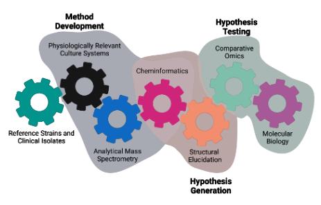 There is an incongruence between in vitro antimicrobial sensitivity testing and treatment efficacy due to metabolic cooperation between co-infecting microbes. We develop and apply novel approaches to elucidate the molecular mechanisms governing the chemical interactions of co-occurring microbes in humanassociated microbiomes to discover new therapeutic strategies for antimicrobial resistance and tolerance.