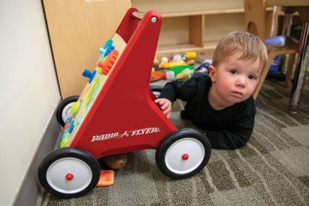 “The Radio Flyer program is really wonderful,” observes lead teacher Jane Connolly. “We have so many different age groups here at the Early Childhood Education Center. Radio Flyer brings us little trikes, bigger bikes, things to glide on, ponies … there’s something for all ages.” Center director Gruenwald is appreciative of the many ways in which the partnership benefits the ECEC. “We have a closet and storage shed full of toys from Radio Flyer,” she says. “Radio Flyer has let us pick from their catalogue freely and has kept us stocked in large-muscle toys—everything from wagons to ride-on toys to bikes.”