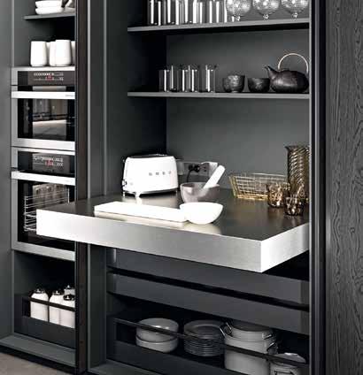 Una cucina super accessoriata all’interno e all’esterno, pensili cestoni e cassetti nascondono attrezzature interne che permettono di sfruttare al meglio lo spazio, mentre i tantissimi accessori sottopensile e i vani a giorno permettono di avere tutto a portata di mano. Soluzioni che incontrano le più moderne necessità, ma anche attrezzature dallo stile classico per soddisfare ogni esigenza stilistica senza perdere in funzionalità.