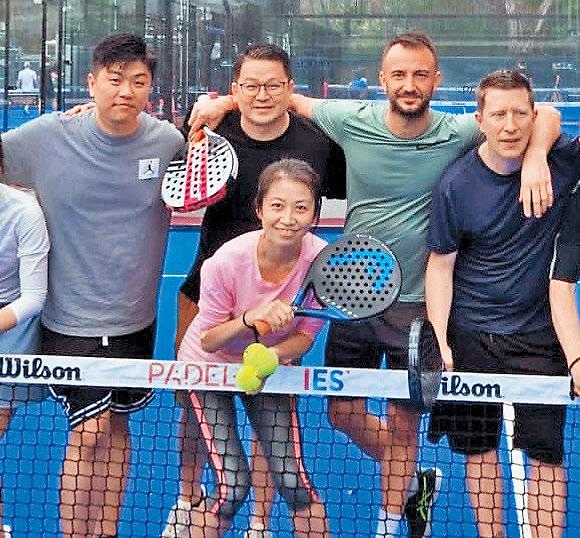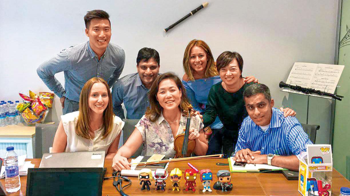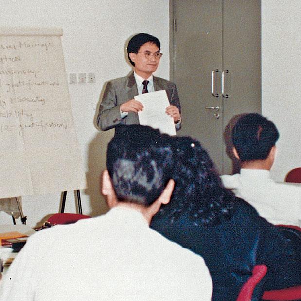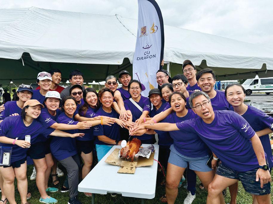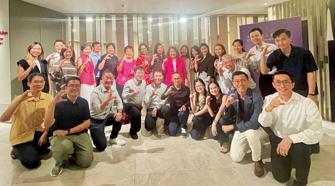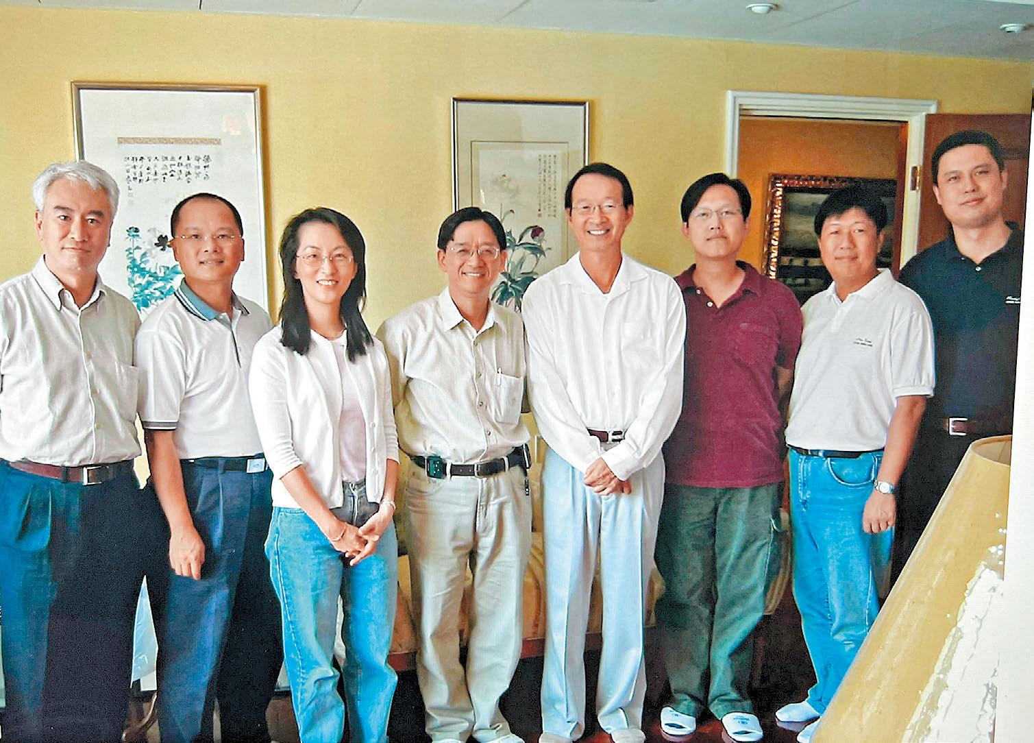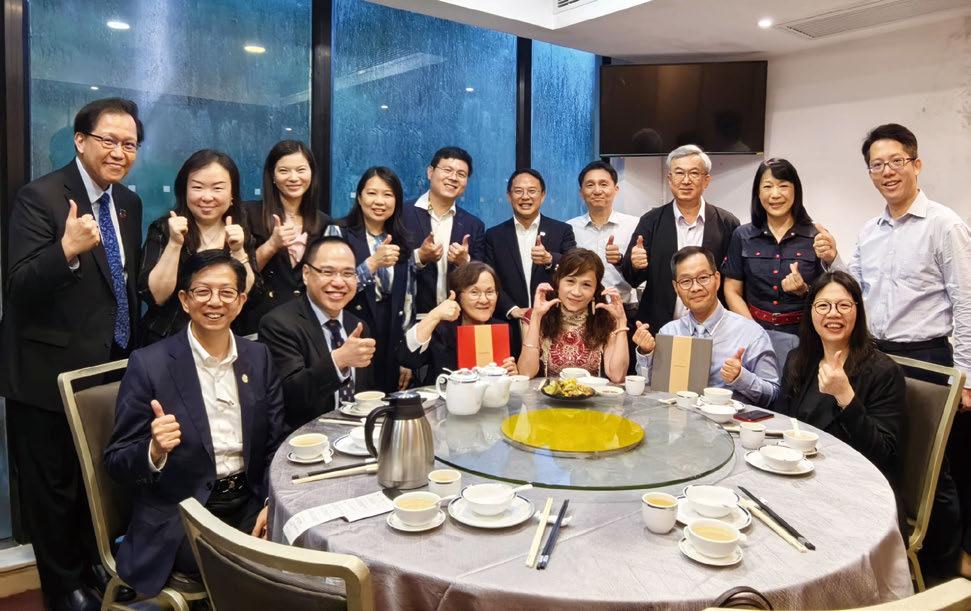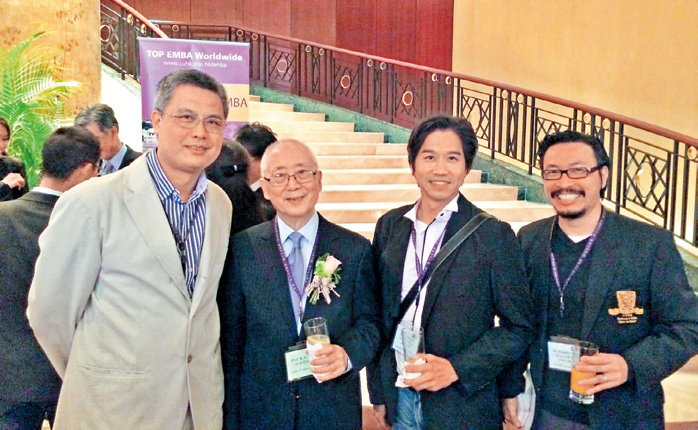 ▲ 鄭松岩校友(右一)在中大讀 EMBA 收穫甚多,最難忘是陳志輝教 授(左四)的教誨及一班同學的友誼。