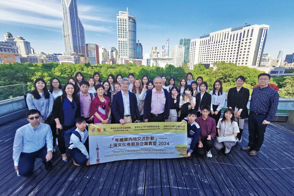於 5 月 26 日至 6 月 29 日合辦「岑繼華內地交流計劃 2024 上海文化考察及企業實習」。讓 30 位崇基學生前往上 海考察及實習五星期,親身體驗當地的企業及生活文化,擴 闊視野。同學於首星期進行了企業和大學參訪,以及文化考 察,6 月初正式展開四星期的企業實習。今年計劃更承蒙上 海市楊浦區人民政府的大力支持,還得到香港中文大學上海 中心與上海五角場創新創業學院協助安排參訪和實習單位。