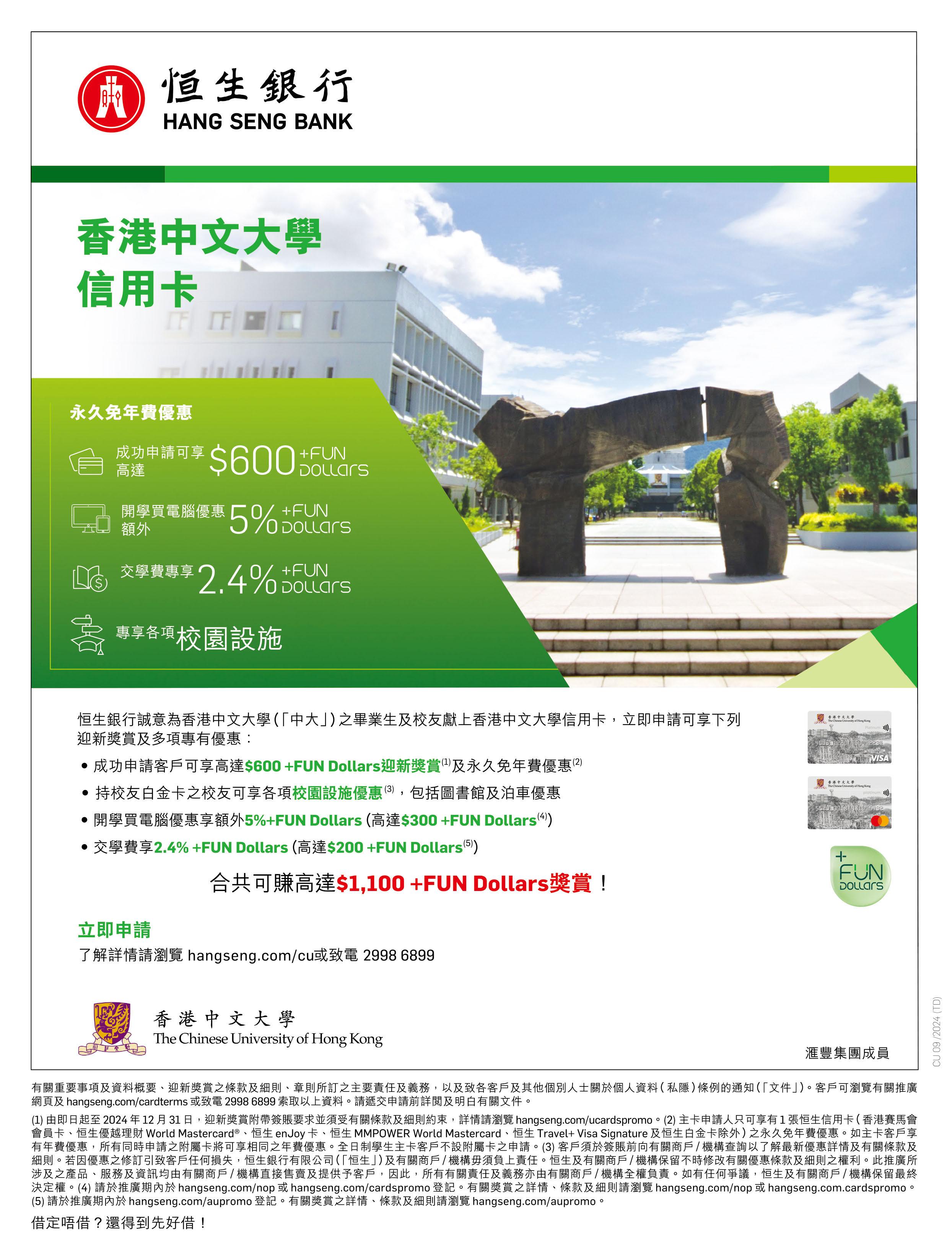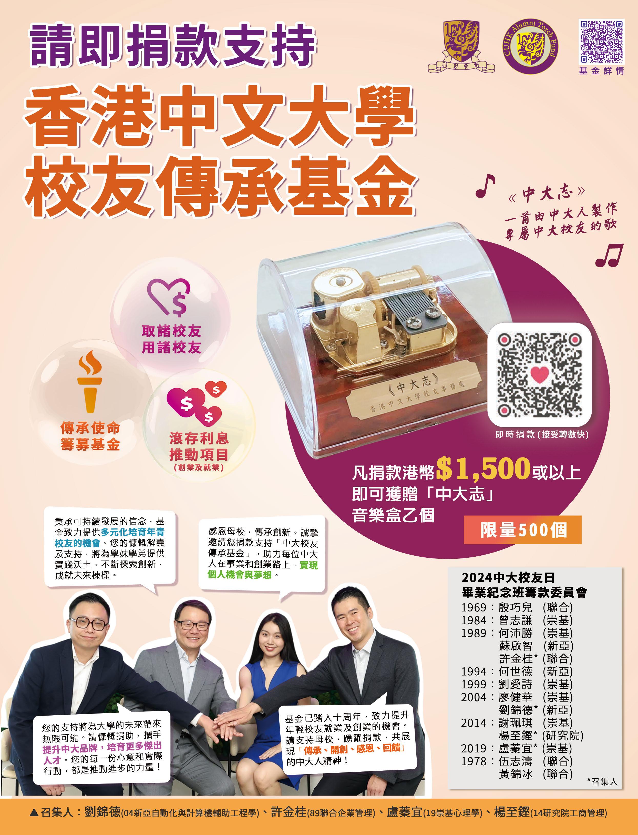 香港校友:捐款港幣 100 元或以上可獲中大發出適用於香港申請扣減本地稅項之正式收據。