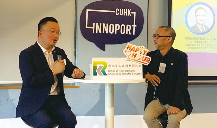 創新及科技系列的故事很有啟發,陳佩及唐嘉其是 大學同屆同學,畢業後一個從商一個專心科研,本 以為沒有接觸的機會,誰知要將科研成果商品化, 就將二人拉在一起。他們接受訪問時,神奇地分別 道出各自的看法時,由始到終也很一致,大家記得 要到校友事務處的 YouTube 頻道,觀看這條訪問短 片。別看陳教授談科研時一面嚴肅,鏡頭背後她相 當鬼馬,拍片前見到我們跟工作人員一字排開,立 刻拿出手機拍下這一刻,小編拍攝過無數受訪者, 還是首次給受訪者反拍!
