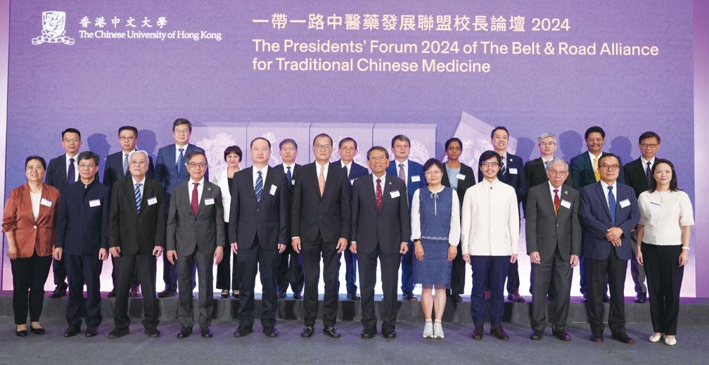 「2024 一帶一路中醫藥發展聯盟校長論壇」於 8 月 16 日 在大學圓滿舉行。來自一帶一路沿線國家及地區,以及 內地的 30 多所與傳統醫藥相關的院校校長和院長在大學 校園齊聚一堂,共同探討傳統醫藥的國際化及現代化發 展。出席嘉賓包括來自中聯辦、外交部駐香 港特別行政區特派員公署、香港政府部門代 表、內地部分省份中醫藥管理局及政府部門 代表、各國駐港大使或參贊等 60 多個機構